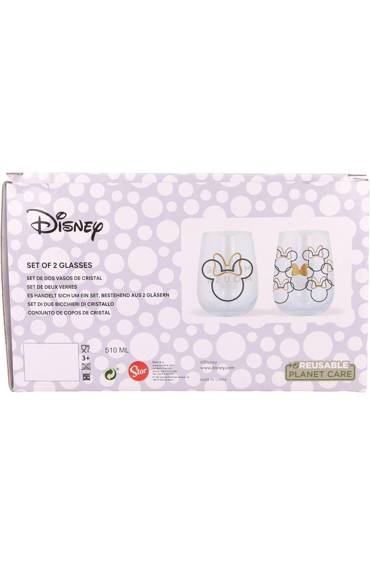 Add a touch of Disney magic to your kitchen with this Set of 2 Minnie Mouse Glasses by Stor. Featuring charming and stylish designs, each glass is decorated with iconic Minnie Mouse silhouettes and gold accents.