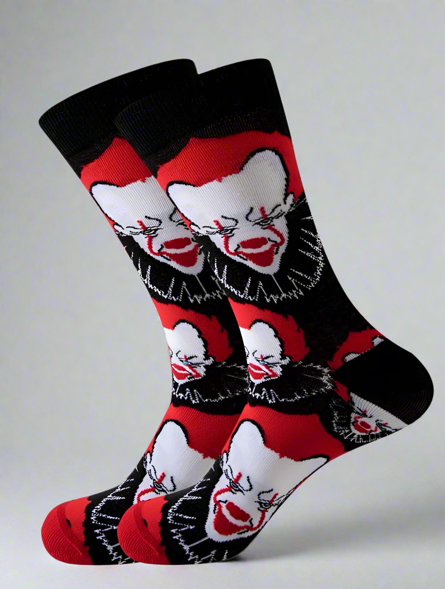 Inspired by Stephen King's bestselling horror novel turned successful movie franchise, fans will love this perfectly terrifying Pennywise the clown socks!