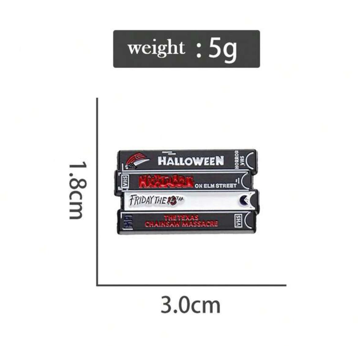 A nostalgic nod to the golden age of horror films that brings a touch of vintage charm to your style. Crafted with meticulous attention to detail, this brooch captures the essence of classic horror on the iconic medium of VHS tapes.